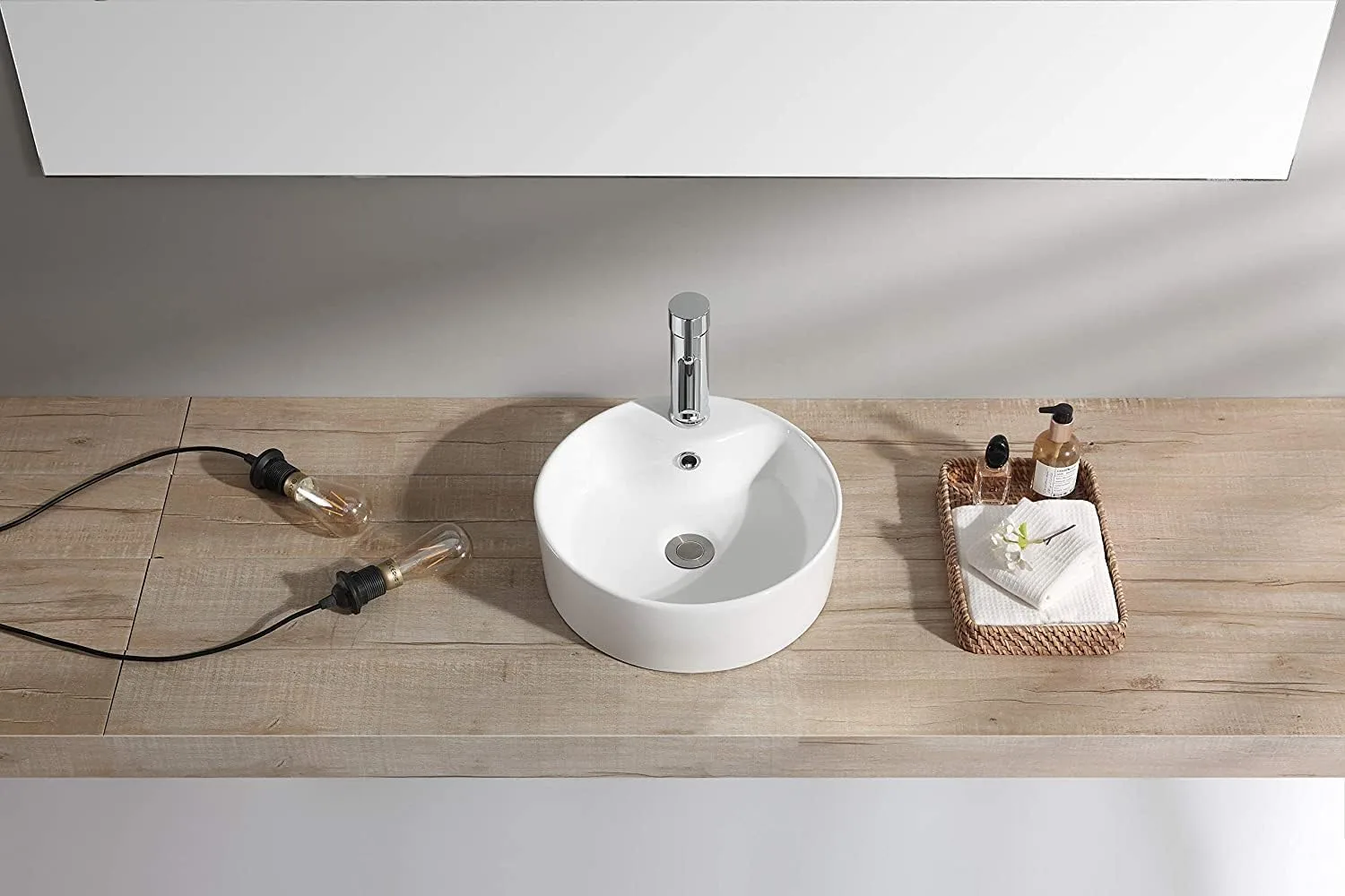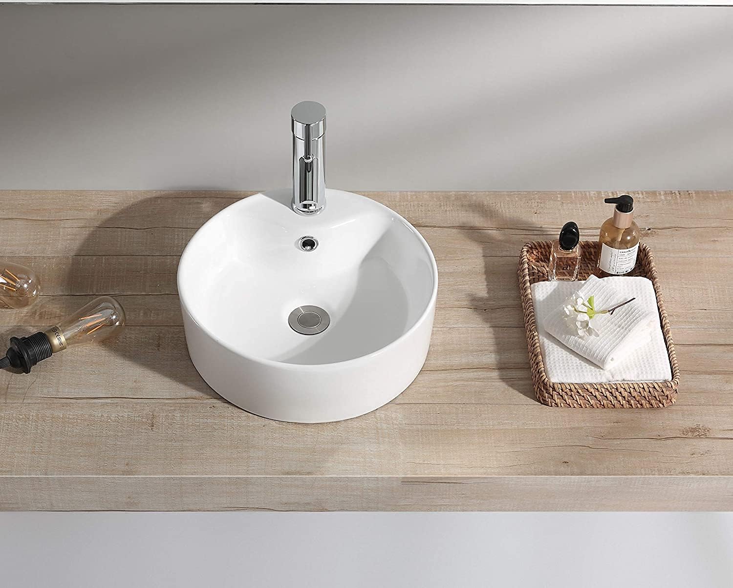 - CONVENIENT VERSATILITY. Countertop basin with a simple and elegant design, the minimalist style ceramic basin has a bright white luster that can embellish your bathroom. The vessel style features a symmetrical and deep basin, which is perfect for a home, hotel, restaurant, etc.