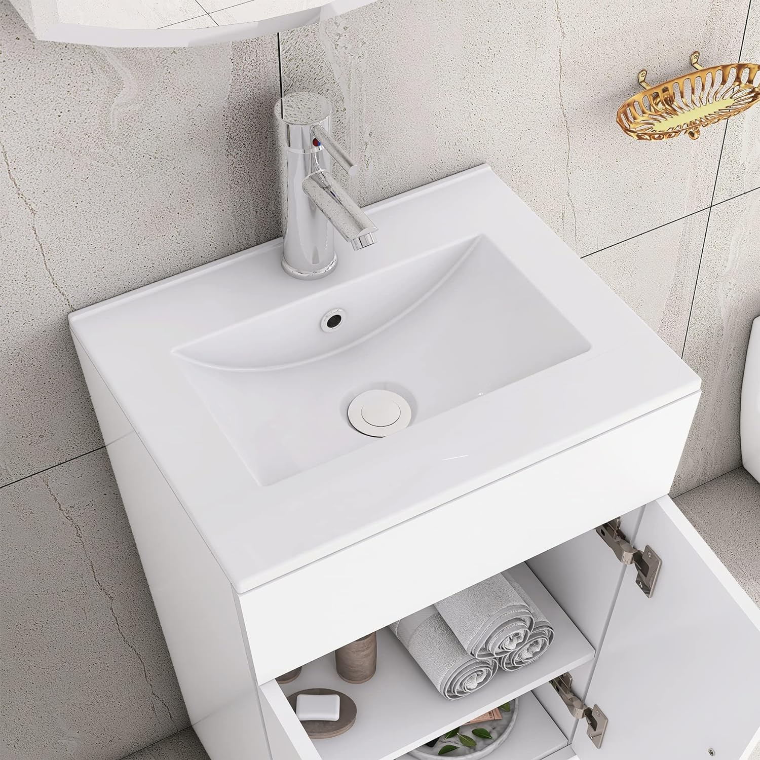 • SMART & COMPACT DESIGN: We keep a lot of indispensable items in the bathroom. It’s important that we’ve got somewhere to put them all. This is where our vanity unit has biggest advantage over a basin and pedestal, with storage under the basin. You’ll have extra room to keep anything you didn’t want to leave on display.